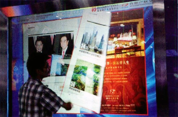 iPad互動系統-展區里100寸光學交互系統可以算是世界上最大的"Ipad” 了。在這里,用手指就可以實現屏幕控制,取代了鼠標、鐳射筆.控制桿等周邊設備。我們可以通過交互系統隨時隨地的獲取信息,觀看新華社發展史、視頻資料及新聞。現在可觸摸查詢七項主題內容: CFC新華08在線數據、中國財經專網、新華每日電訊、新華歷史視頻資料、電子書籍、新華手機報、尊貴相冊。