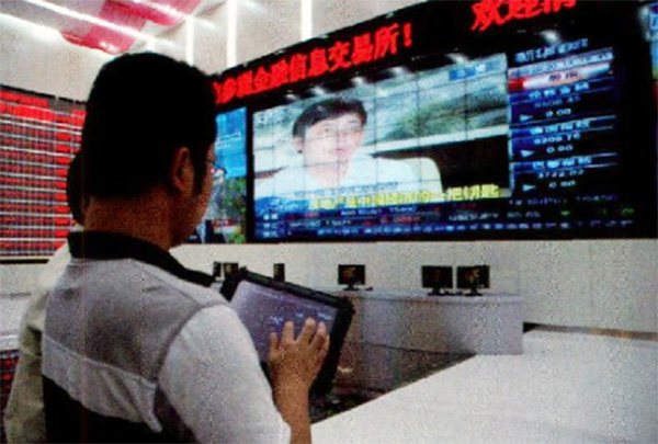 智能中控-參觀中記者發現陪同的技術人員手上拿著一塊平板電腦,這就是為什么我們走到那里都有特殊待遇 的原因了。交易所采用的MIP智能管理控制系統,專門用于多媒體控制的新型技術。MIP可以將原來對各類視頻源、音頻源、視音頻終端播放設備、各類信號間的切換和一些強電設備的分散控制和操作全部集中在一起,經過軟件編程,就可以在同一個觸摸屏上實現對所有設備的分別控制和程序化控制。